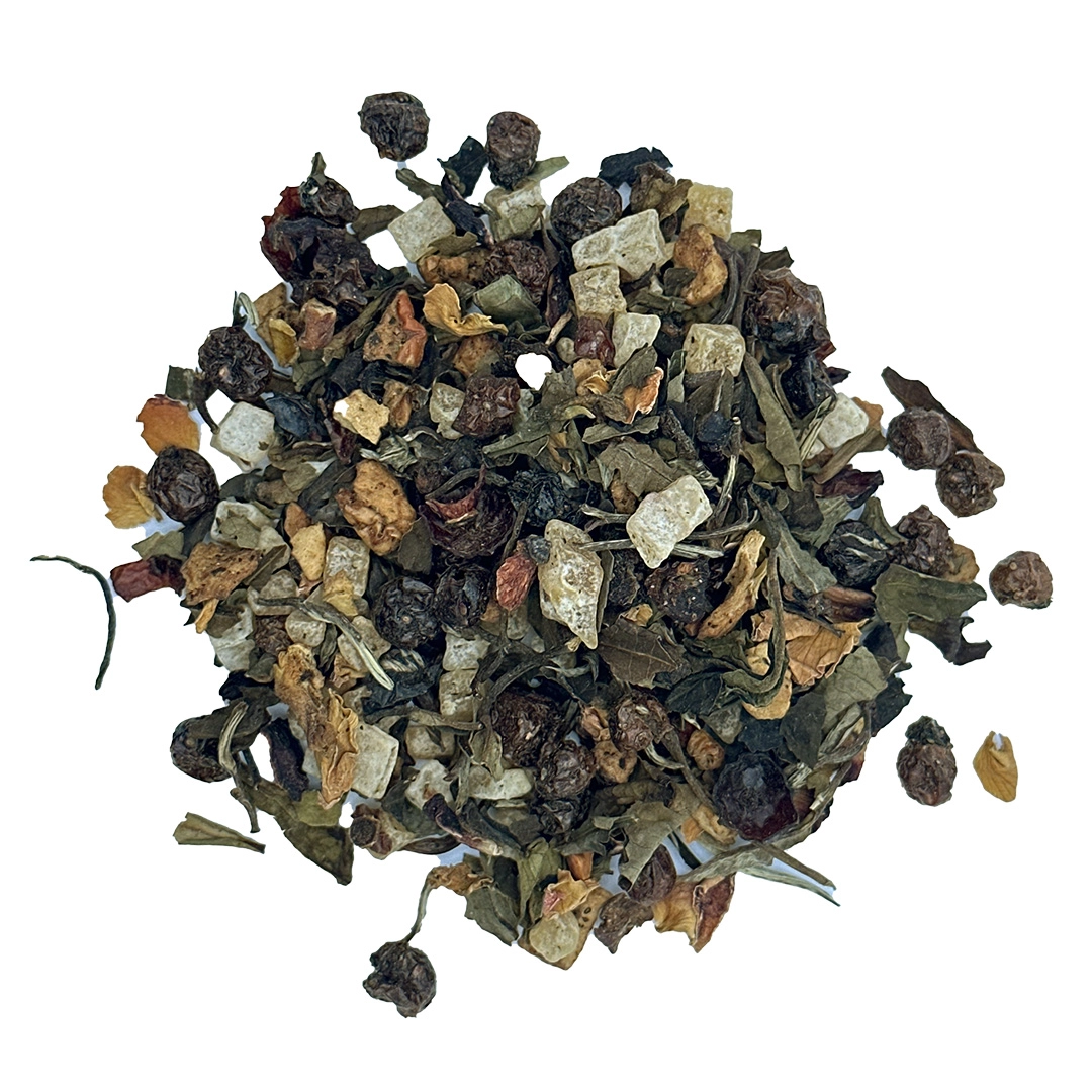 Playful and sweet, this blend of white tea, candied pineapple, mango, and berries offers an exotic twist. A great choice for anyone who loves fruit-infused teas with a tropical flair. Shop this tea here!