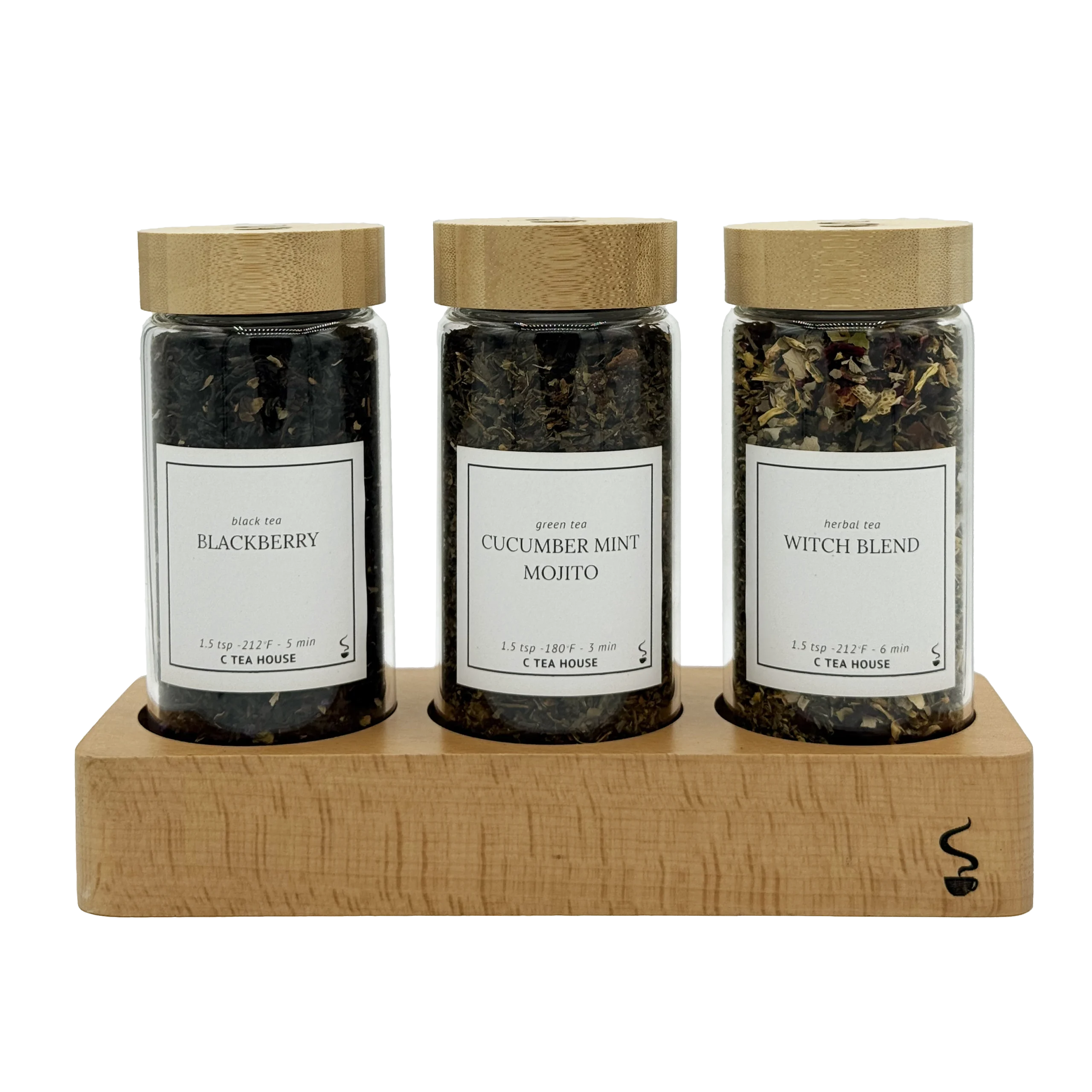 Our loose leaf tea gift set is the perfect blend of elegance and functionality for tea lovers. This set includes three premium glass tubes filled with loose leaf tea, each sealed with a wooden screw-top lid to lock in freshness. The tubes rest in a beautifully crafted wooden display base, making it an eye-catching addition to any kitchen or tea station.