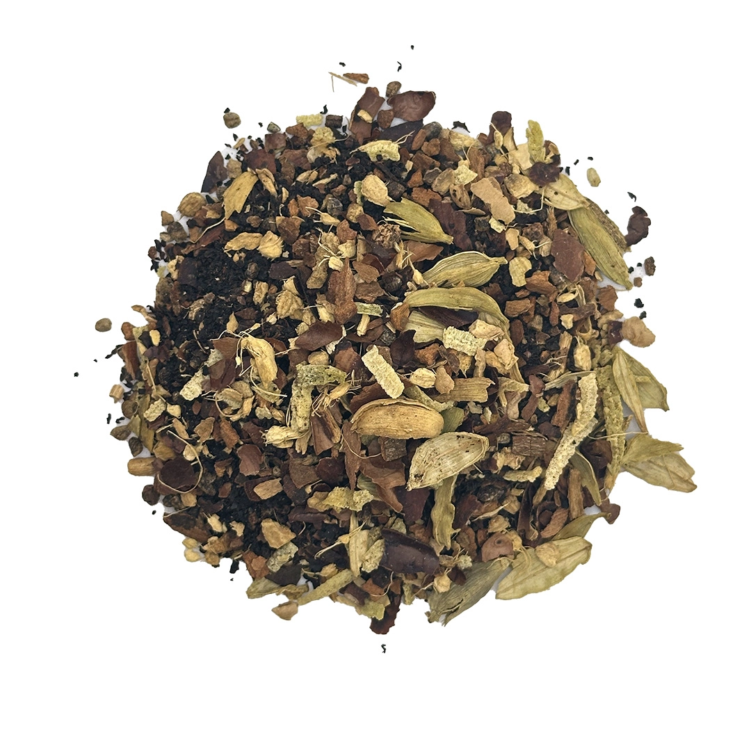 Exotic chai spices, creamy sarsaparilla, dark cocoa shells, and a touch of caramel playfully enhance this antioxidant-rich chai tea. Enjoy on its own, or brew it strong and add a splash of milk and honey to enhance the dessert-like character.