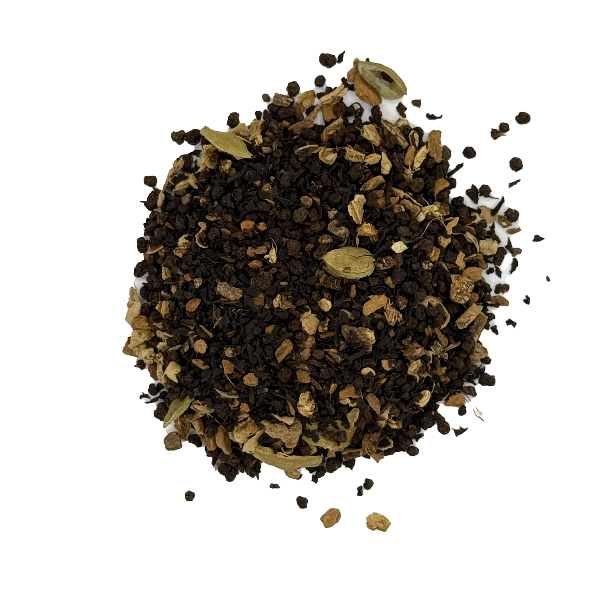 Caffeine-free chai tea made from South African rooibos blended with shredded coconut, red peppercorns and aromatic spices including ginger, cinnamon, and cardamom.